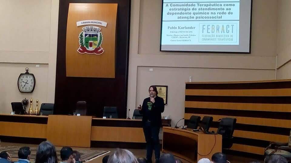 Em 12 de abril de 2019, na Câmara Municipal de Quatro Barras- PR, aconteceu o I Seminário de Políticas Públicas sobre Drogas, onde Pablo Kurlander, Gestor Geral da FEBRACT, realizou uma palestra sobre: “A Inserção da Comunidade Terapêutica na Retenção Psicossocial”, assim como as Políticas Sobre Drogas atuais perante a nova Política Nacional de Álcool e Droga.