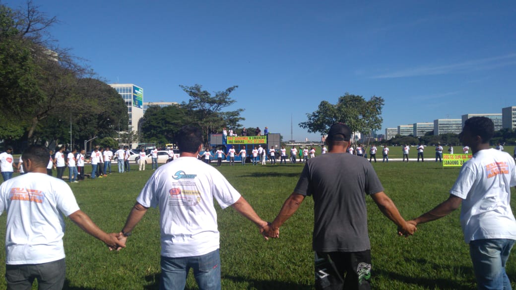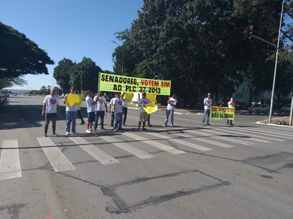 Concomitantemente, usuários do serviço de acolhimento para cuidado e tratamento do adoecimento pelo uso de drogas (comunidades terapêuticas), realizam manifestação pública em solicitação à aprovação deste Projeto de Lei.