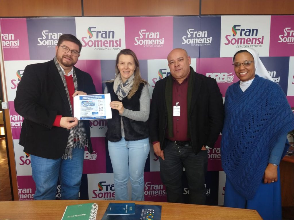 A Delegacia FEBRACT Rio Grande do Sul esteve reunida com a Deputada Estadual Fran Somensi da Bancada do PRB em 15 de agosto de 2019 no Gabinete da referida Deputada, onde em parceria, construímos juntos o projeto que culminou com a criação da Frente Parlamentar em Defesa das Comunidades Terapêuticas do Rio Grande do Sul.