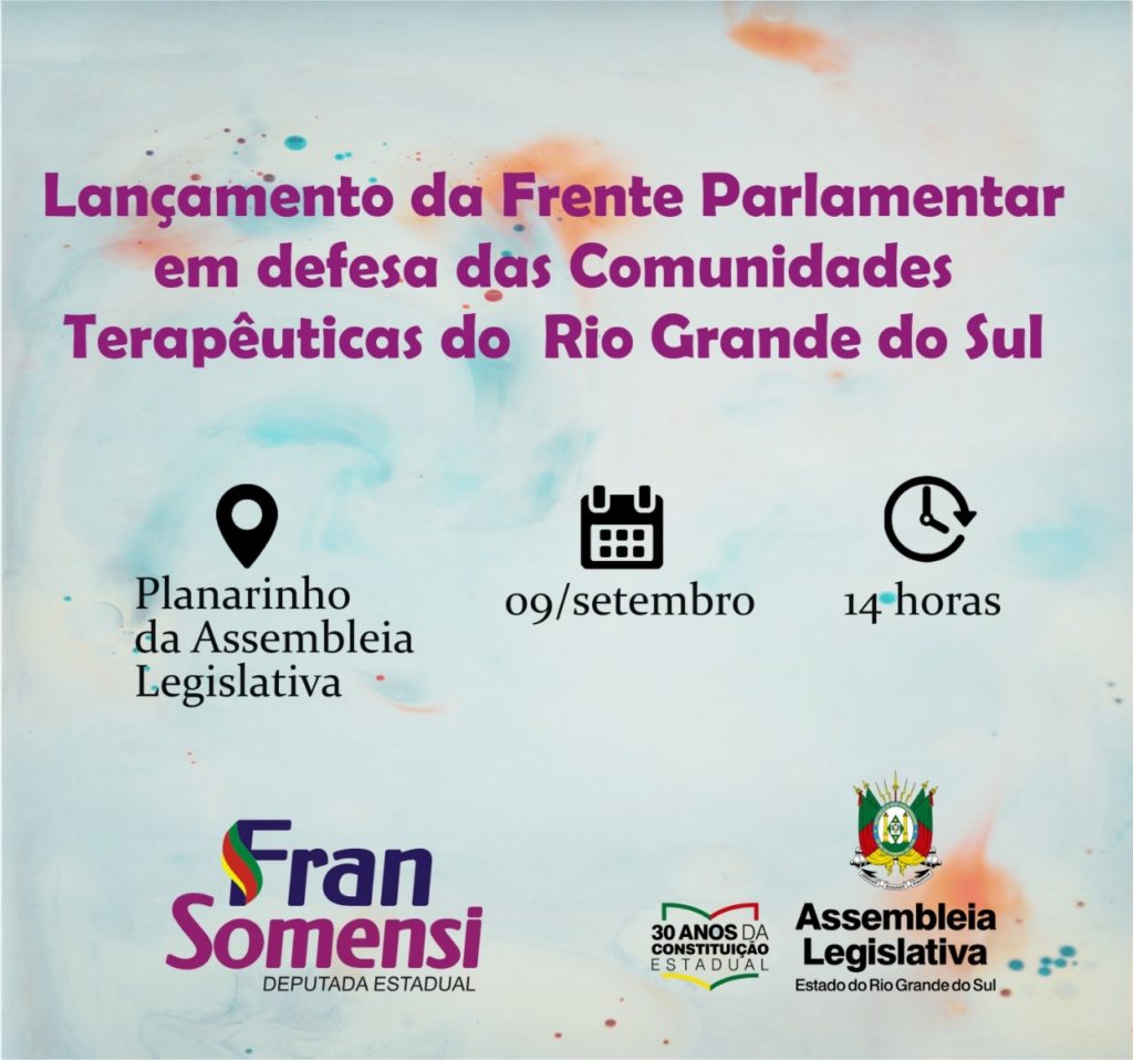 O lançamento da Frente Parlamentar vai acontecer dentro do FOPECT, Fórum Permanente das Comunidades Terapêuticas do Rio Grande do Sul.