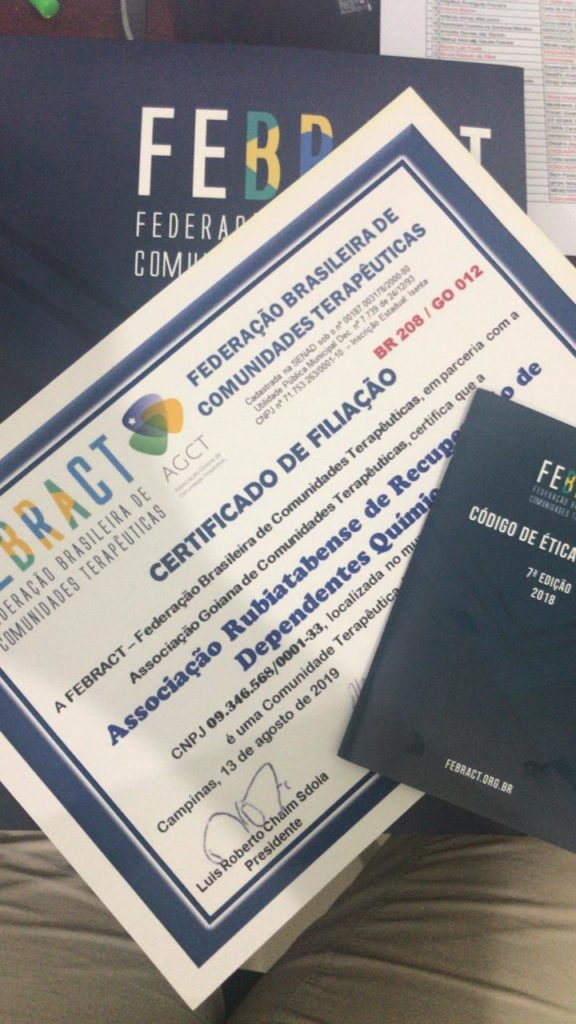 E FEBRACT/AGCT realizaram a entrega de certificados de filiação de 9 CTs que receberam o mesmo, das mãos do Secretário Nacional de cuidados e prevenção às drogas, Dr. Quirino Cordeiro Jr,:
