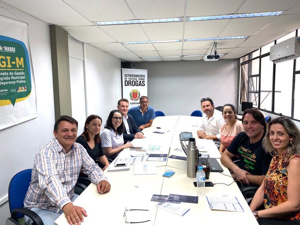 A reunião foi com a equipe da Secretaria Municipal da Defesa Social e Trânsito de Curitiba, Diretor do Departamento de Políticas sobre Drogas, Cristiano De Bastiani, Vereador Tico Kusma, Equipe da Secretaria Bárbara e Simone, e equipe FEBRACT.