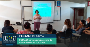 A convite da professora Vera Morcelli do programa de extensão PNV da PUC Goiás, Sherydan Luiza, assistente social e delegada regional da FEBRACT em Goiás palestrou sobre “Os impactos das novas política e lei nacional de drogas”.